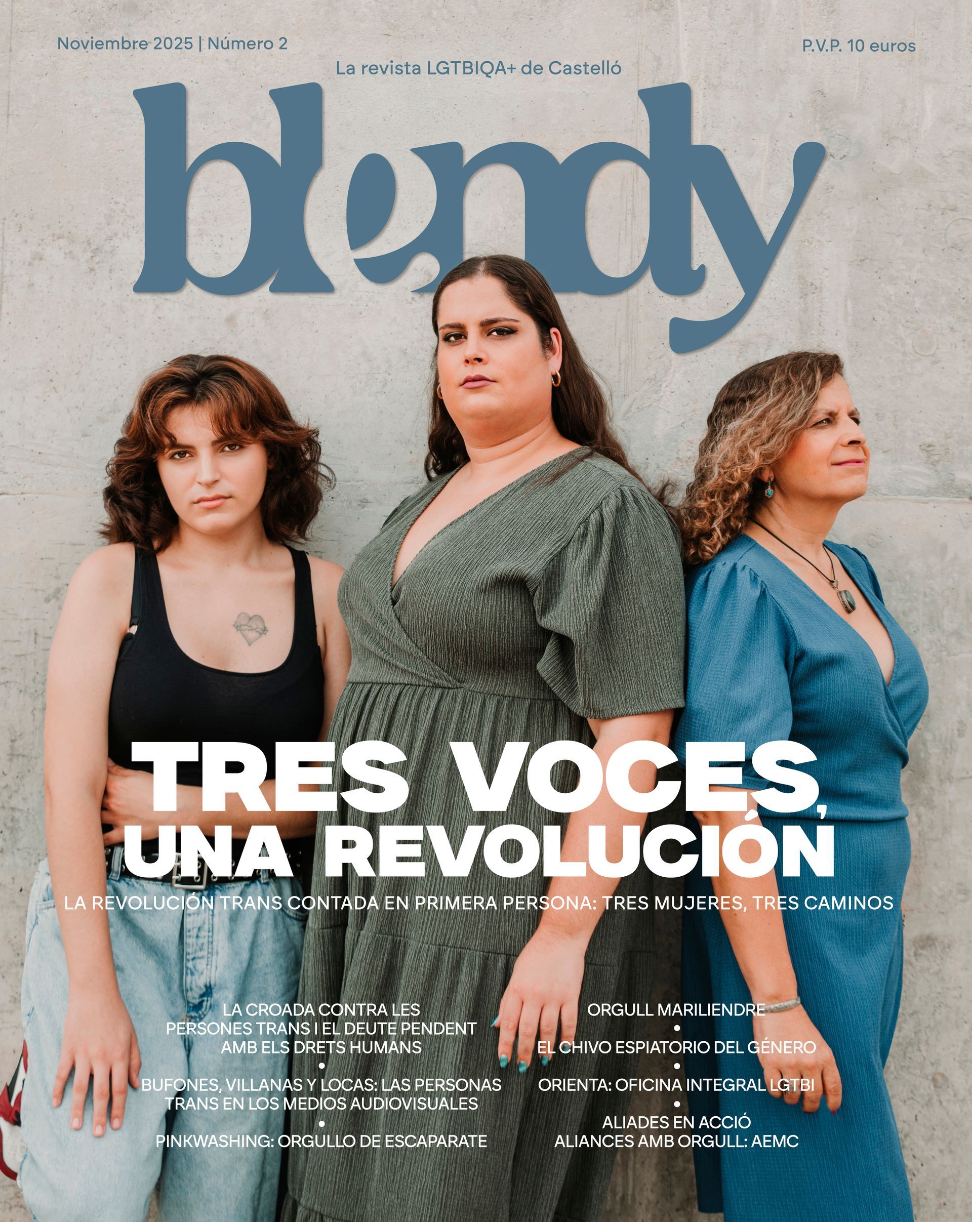 Blendy nace en 2025 como una publicación dedicada a la comunidad LGTBIQA+, creada en Castelló para sus habitantes. Esta revista aspira a ser una plataforma de visibilización para todas aquellas realidades e identidades aún relegadas al anonimato, narrando historias que merecen ser escuchadas y compartidas.